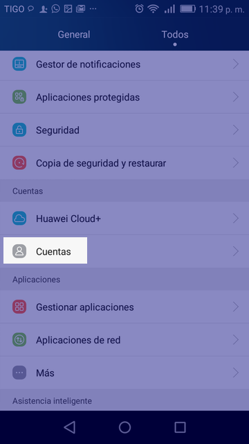 - 2. Selecciona: Cuentas/Cuentas y Sincronización