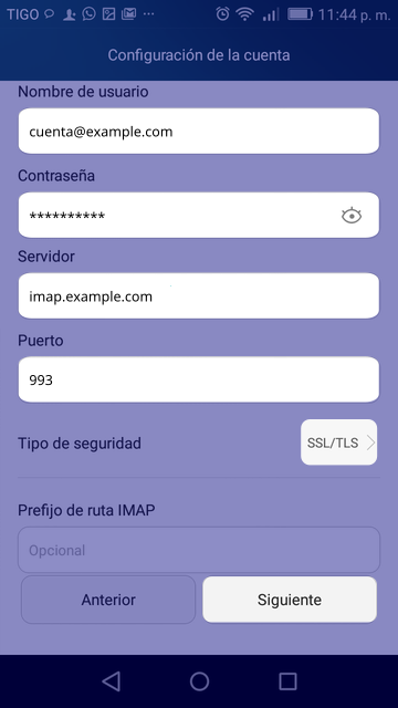 - 6. Selecciona el tipo de cuenta: IMAP/Cuenta IMAP
