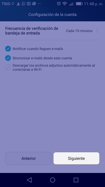 - 9. Indica la periodicidad de verificación de los correos y demás opciones (notificación, sincronización, etc.)